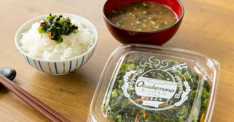 【有限会社タクナ】食材の色味を活かす、白一色のデザイン。漬物らしくない洗練されたパッケージで、若い世代のお客様からも好評です。