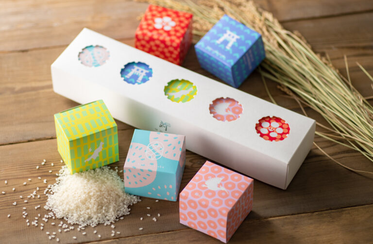 【保苅米穀】ギフト需要を見据え「かわいい」に振り切ったパッケージを依頼。各産地の地域性を表現したデザインが、土産物店でも好評です。