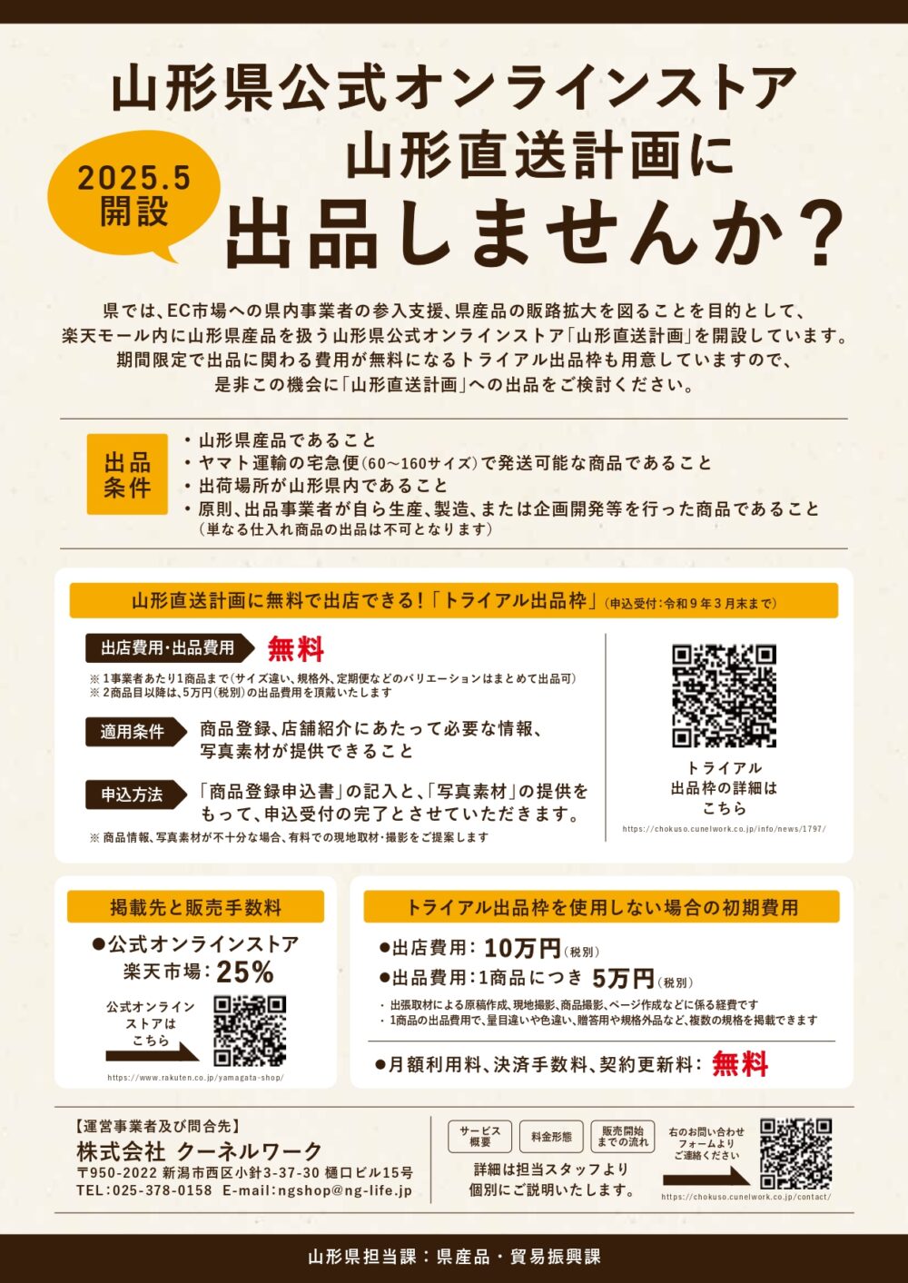 これに伴い、山形直送計画に無償で出店できる「トライアル出品枠」の提供を開始いたします。